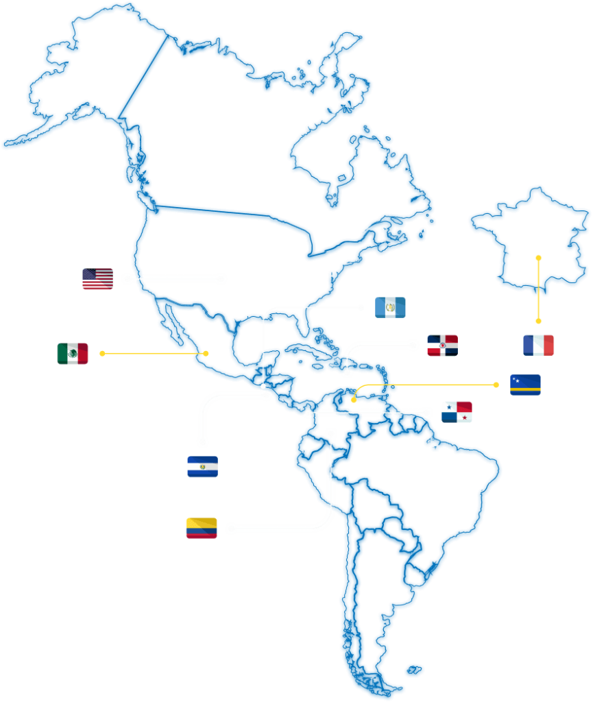 Operamos en Colombia, Panamá, República Dominicana, Guatemala, El Salvador y Estados Unidos, lo que nos permite ofrecer cercanía, flexibilidad y un modelo de operación adaptado a cada mercado.